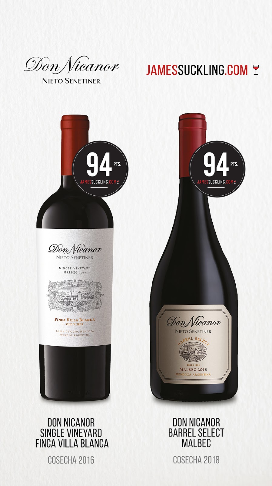 Buenos puntajes de James Suckling para los vinos de Nieto Senetiner