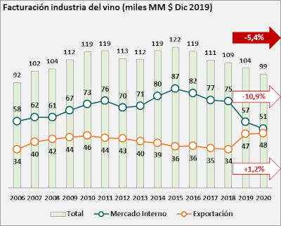 En el mercado externo, la disminución fue aún más importante dado que lo que se expandió fue la exportación de vinos a granel de bajo precio; y el precio promedio cayó casi 14% y dejó la cotización en niveles por debajo de 2009.