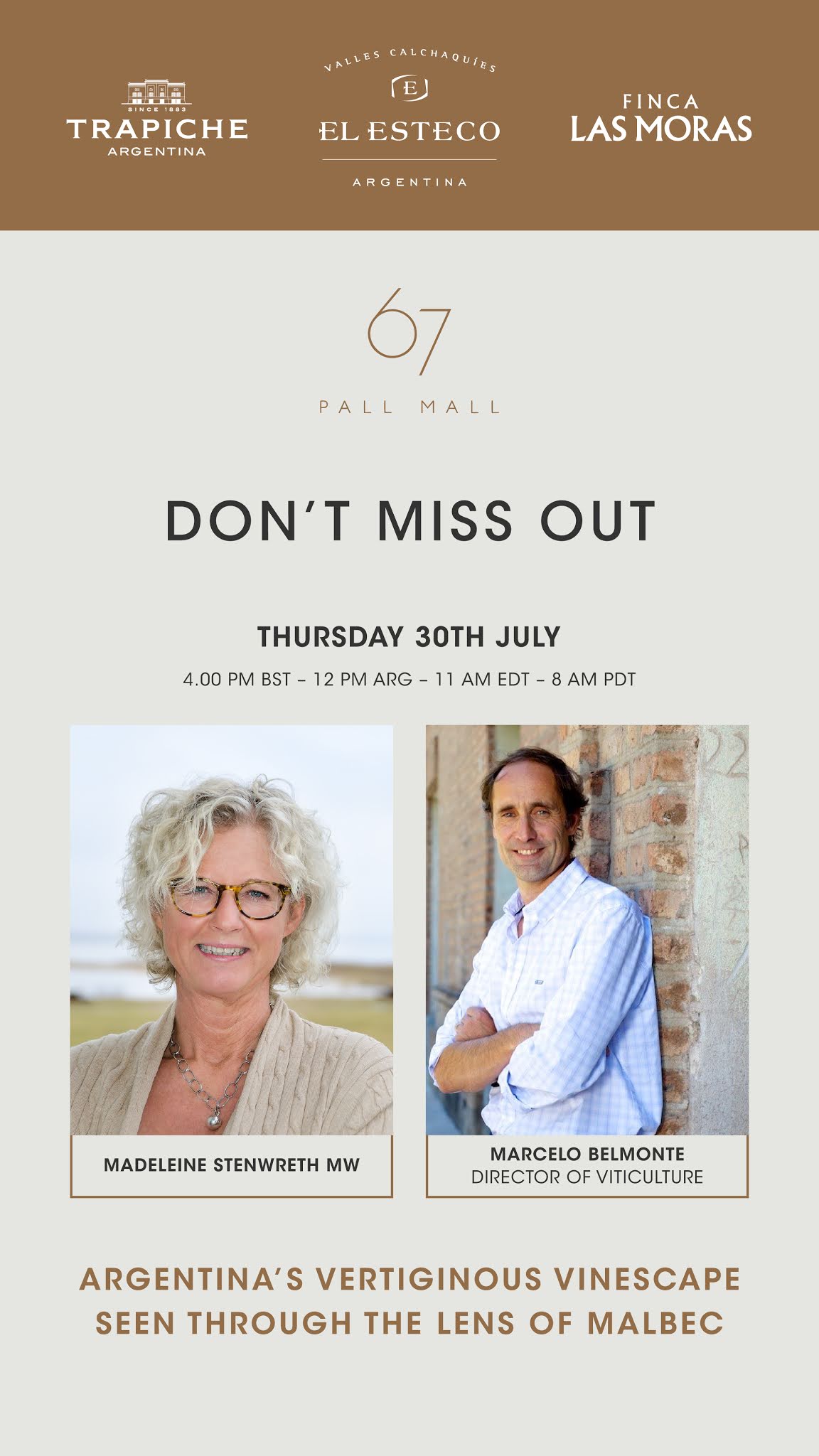 El enólogo y jefe de Vitivinicultura de Grupo Peñaflor, Marcelo Belmonte, protagonizará este jueves 30 de julio una Master Class virtual organizada por el club de winelovers “67 Pall Mall” de Londres, conducida por la Master Wine sueca Madeleine Stenwreth.