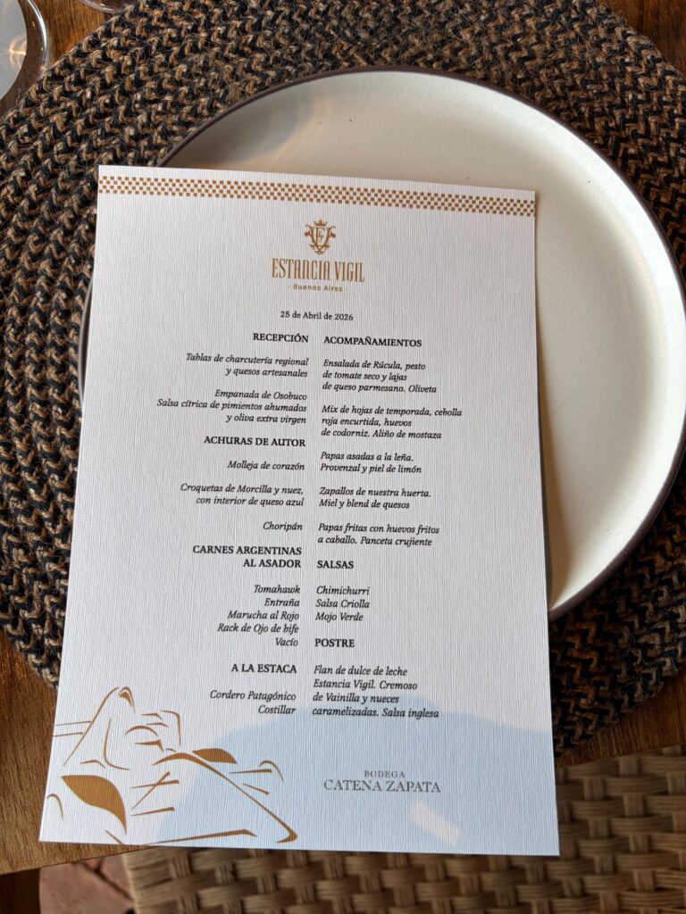 Los vinos que acompañaron el almuerzo fueron: Malbec Argentino, Nicolás Catena y Birth of Cabernet, de la bodega Catena Zapata.