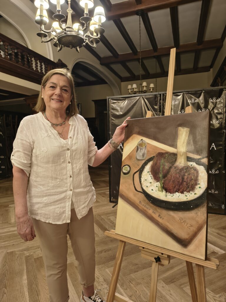 Como el plato estrella de la carta sigue siendo el Osobuco del Rey, de cocción lenta que resalta los sabores intensos y la textura melosa de la carne, en el lanzamiento de los nuevos platos la artista plástica Ana María Peix pintó en vivo el tercer cuadro del Osobuco del Rey.