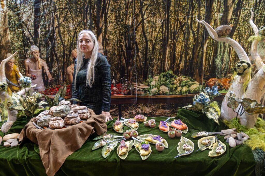 El cruce entre arte y gastronomía se expresó mediante la intervención escultórico-gastronómica Banquete para enormes colibríes, de la artista visual Nicola Costantino, representante argentina en la 55º edición de la Bienal de Venecia.